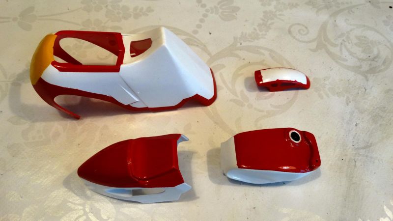 Het afplakken is ook een verhaal apart. In de korte bochten liet de masking tape zich niet makkelijk verwerken. Inmiddels betere tape en nog secuurder afplakken. Als de tape ook maar ergens niet goed aansluit nevel je de lak er onder. Dat is dus ook te zien. De uitlopertjes heb ik nog maar even met het oude kwastje bijgewerkt. Alle begin is moeilijk.