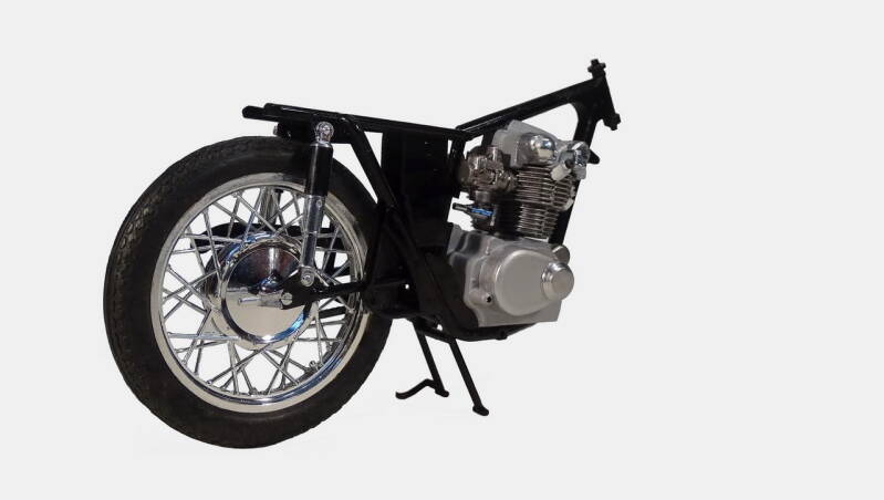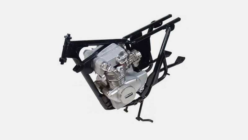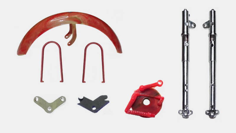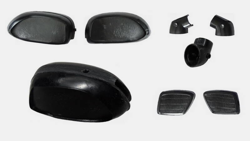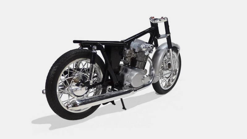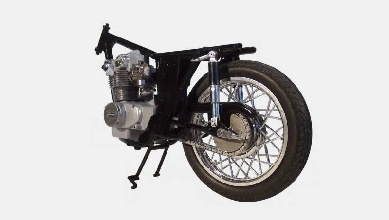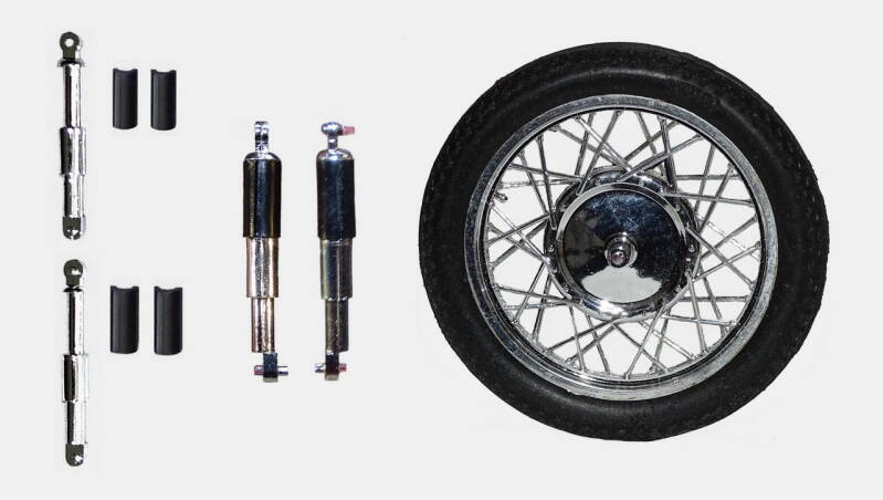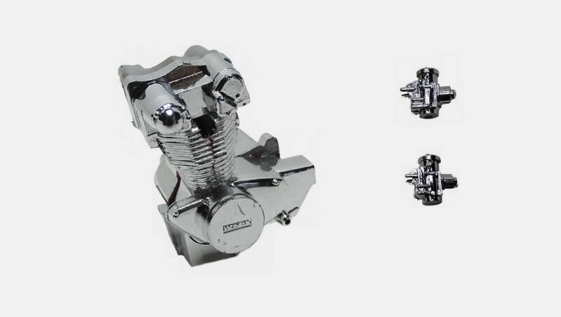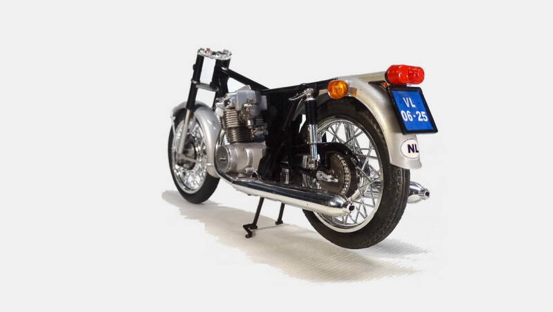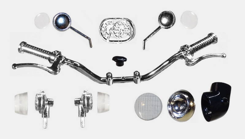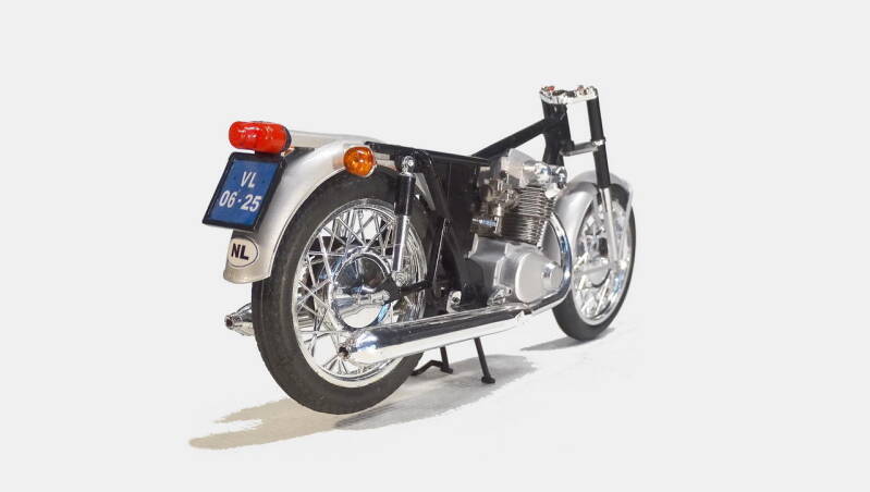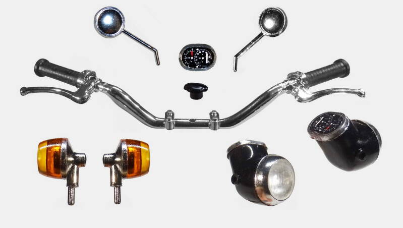 2 rekken met chrome onderdelen was in de zeventiger jaren erg lux. De meeste andere merken leverden nog geen chrome rek. Bij dit model is het wel te veel van het goede en derhalve een aantal onderdelen geselecteerd waarvan het chrome verwijderd is. Later in de bouw ziet u de nieuwe kleur overeenkomstig de originele motor.