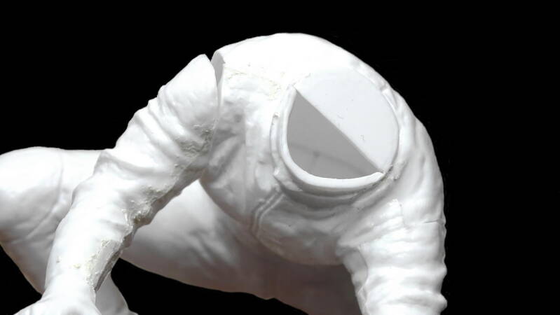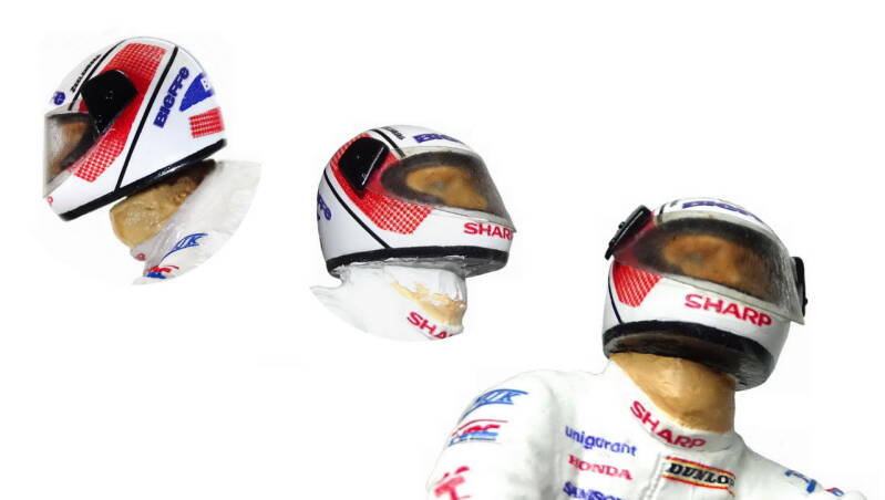 Ook de nek is inmiddels opgevuld om een juiste positie van het hoofd te krijgen. In de standaard uitvoering kijkt hij naar beneden naar de tank en dit is niet realistisch. Inmiddels ben ik op internet aan het zoeken geslagen voor de verschillende teksten en logo's om uiteindelijk alles op maat te maken voor de decals.