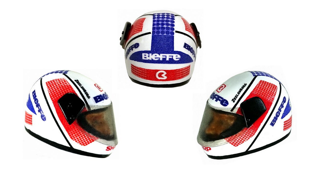 De helm is afgewerkt met meerdere lagen glans lak.
