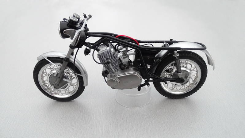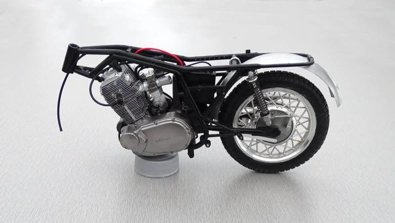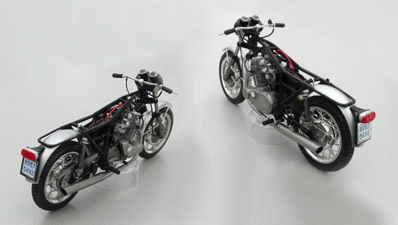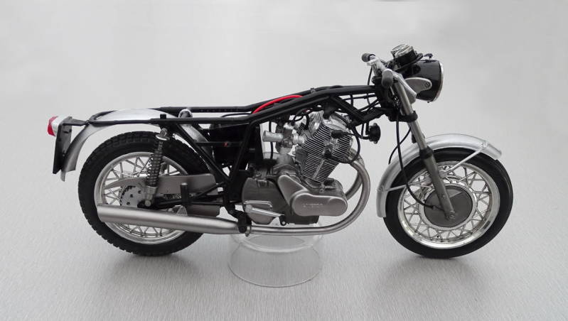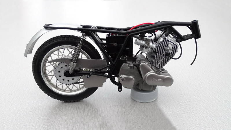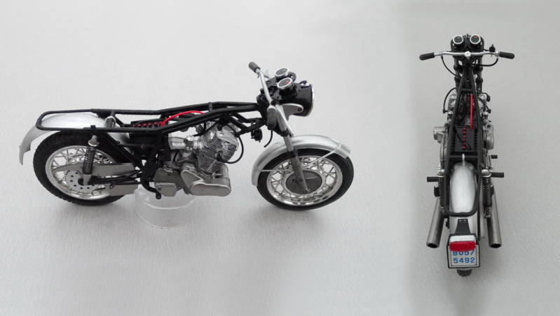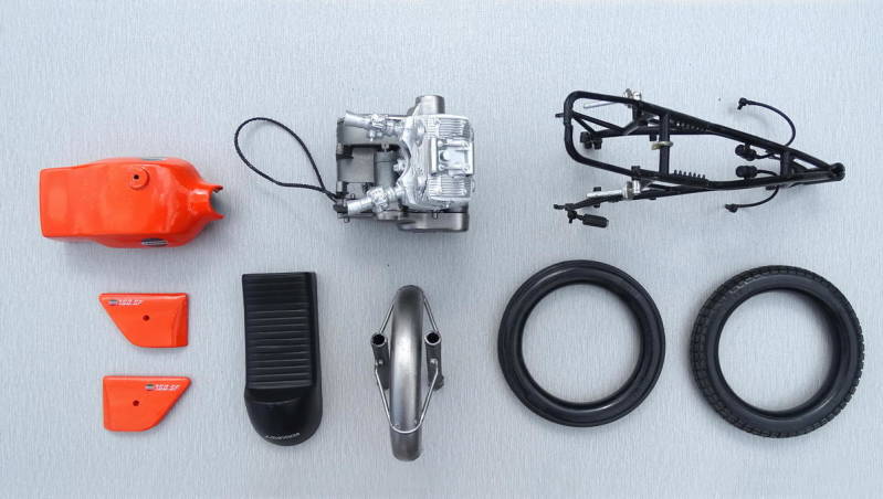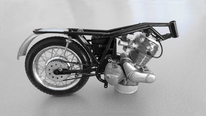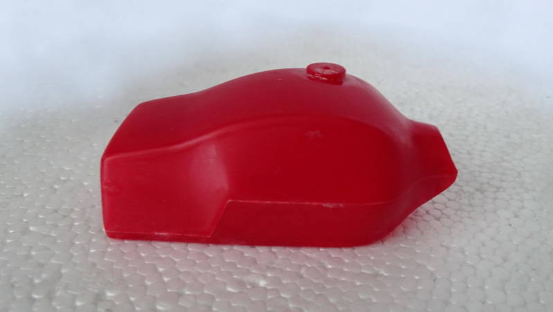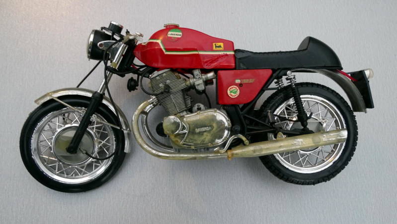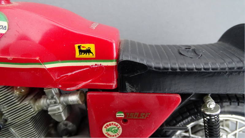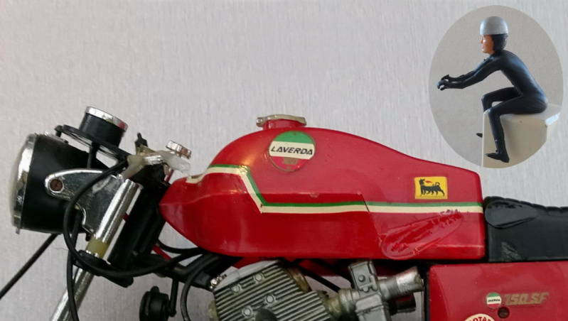 Op dit model heeft een rijders model van protar gezeten. Het rubber van de pop en het plastic gaan een chemische reactie aan waardoor het plastic smelt en vervormd zoals bij de tank en het zadel te zien is.
