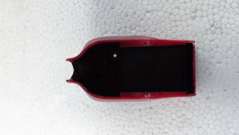 De binnenzijde zwart gemaakt. Hierdoor krijgt de te spuiten kleur een diepere tint waardoor het minder plastic achtig lijkt.