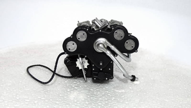 Daar zat ook de Guzzi 8 cylinder bij. De nieuwe laat ik dus nog even onaangeroerd in de doos zitten en ga eerst dit model restaureren.