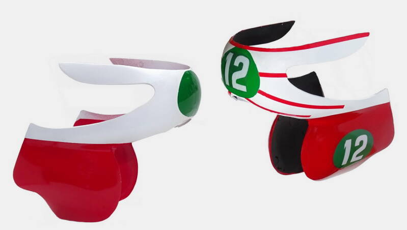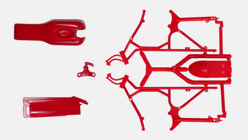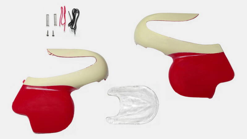 De stroomlijn verlijmd en gepolijst en vervolgens in kleur gespoten. De onderkant in rood is ook opnieuw gespoten.