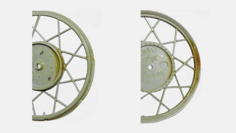 Voor we met de bouw van de achterzijde van de motor verder gaan ga ik eerst nog wat aan het chroomwerk doen. Er zitten veel chroom onderdelen bij dit model. Niet al het chroom heeft de tand der tijds goed doorstaan en daarnaast was deze motor in die tijd een werkpaard en geen showmodel. Het kan dus wel wat minder.