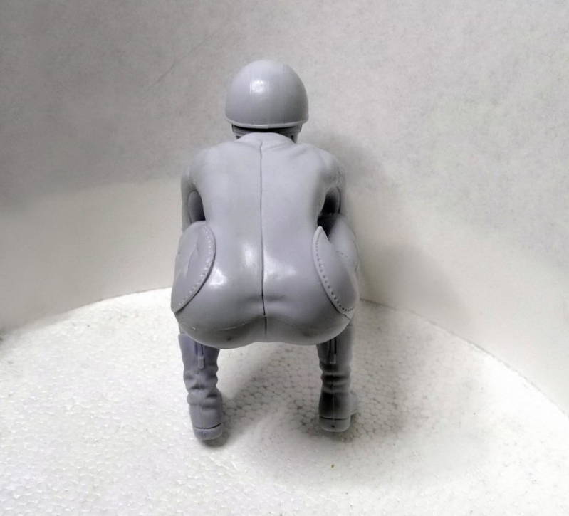 Het model van de Protar rijders figuur heb ik onbeschilderd gekocht met de bedoeling deze zelf aan te passen. Het model is goed te transformeren. Grote stukken heb ik verwijderd met de dremel en daarna bewerkt met een scherpe scalpel en schuurpapier.