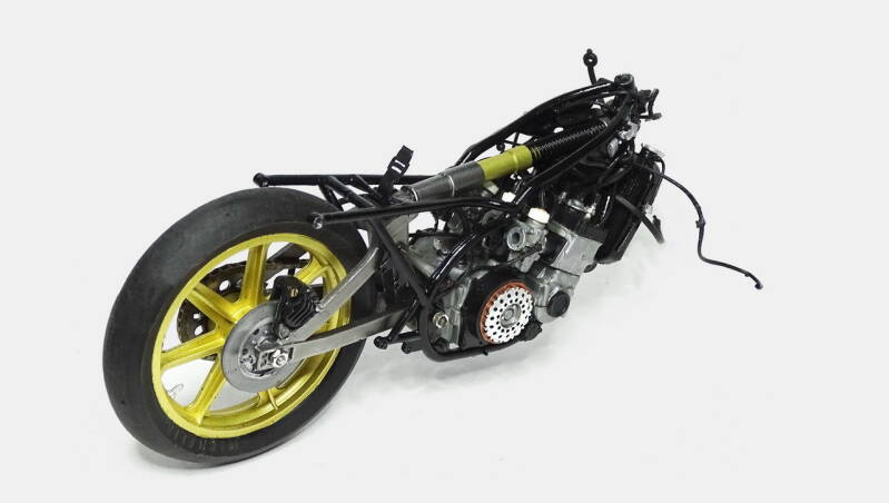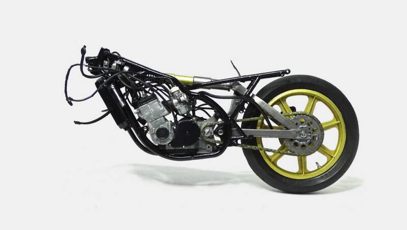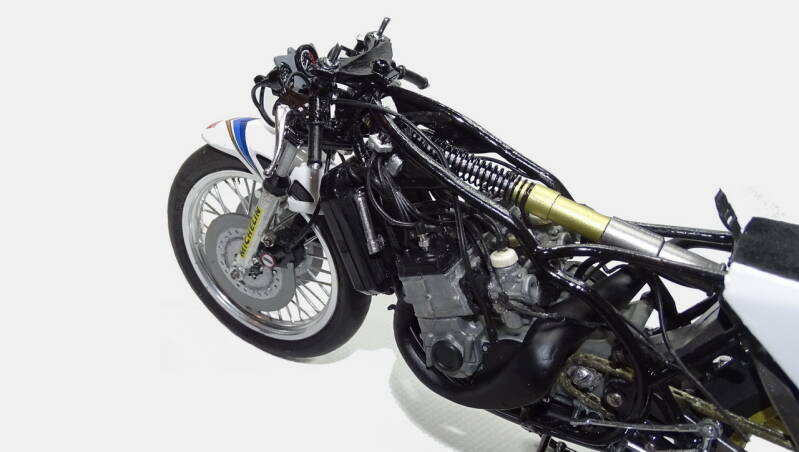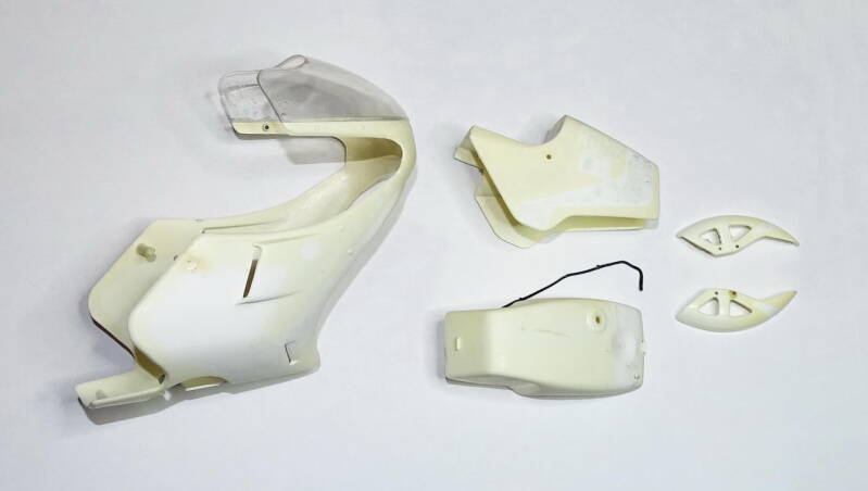 De decals zijn geplaatst. Dus nu aflakken en dan verder met de motor. Het lakwerk van de body kan nu rustig uitharden voor het op de motor geplaatst wordt.