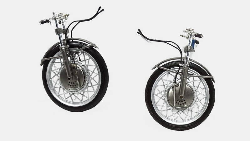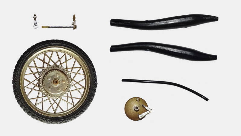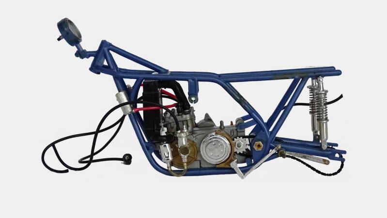 Het model verkeert in zeer slechte staat. Sterk verwaarloosd, veel onderdelen afgebroken, onder meer de voorvork en de kuip.