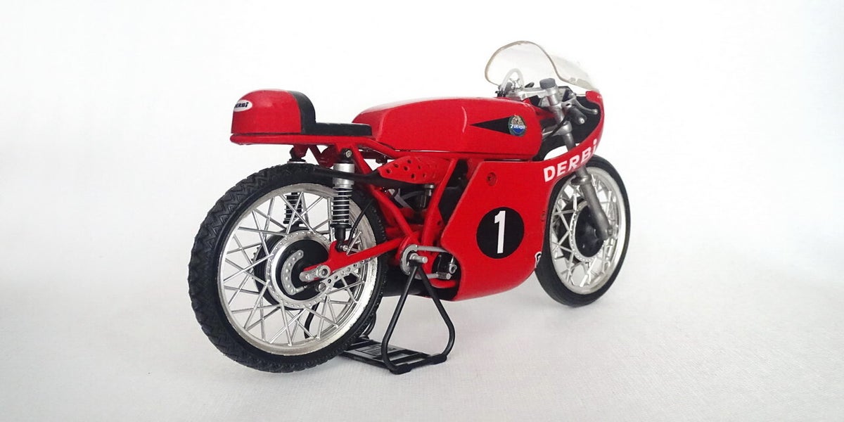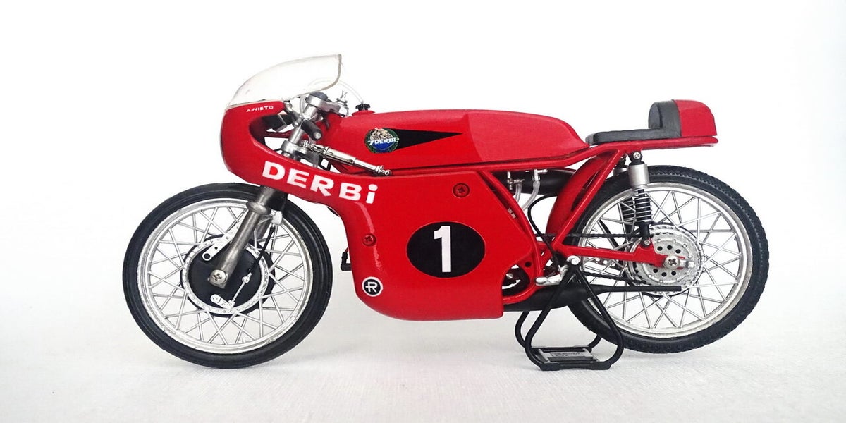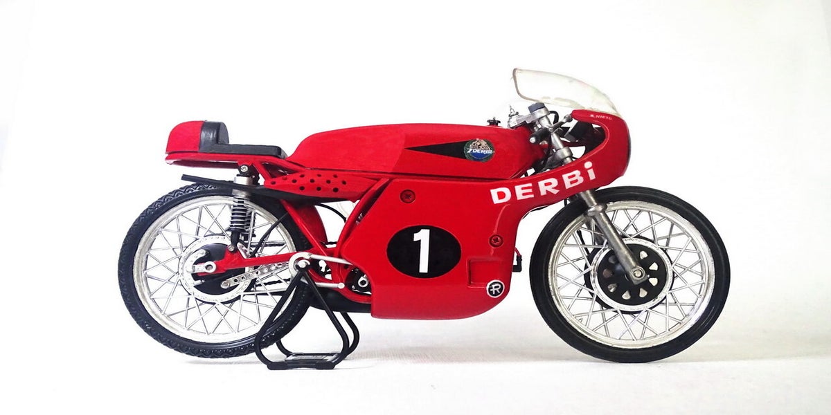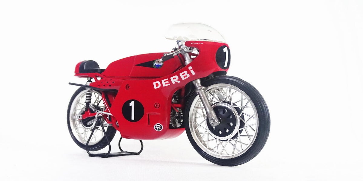 Derbi is in 1922 opgericht door Simón Rabasa i Singla. Hij begon de productie in een kleine fietswerkplaats maar al snel groeide het merk uit tot een successtory. In de jaren '60 stapt Derbi in het WK wegrace met een 50- en 125cc machine. Inmiddels weten wij dat dit uitgroeide tot een succesverhaal. Angel Nieto was de absolute nr 1 bij derbi en won voor dit merk in totaal 5 wereldtitels verdeeld over beide klasse.