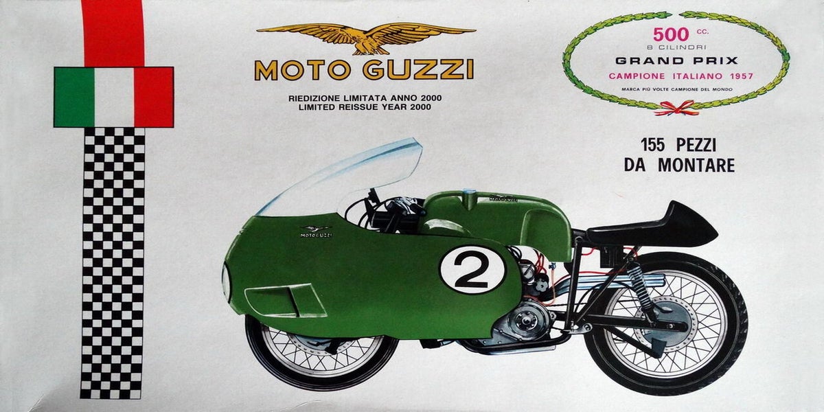 In de winterstop van 1953/54 begon de ontwikkeling van de inmiddels legendarische 8 cilinder. Het ontwerp werd op papier gezet en in oktober 1954 werd definitief groen licht gegeven voor de productie van de V8. In een half jaar tijd werd deze machine vanaf de ontwerptekening gebouwd en voorjaar 1955 stond de Moto Guzzi "otto cilindri" op het circuit. Men hoopte met deze machine een gooi te doen naar het zo felbegeerde 500cc wereldkampioenschap.