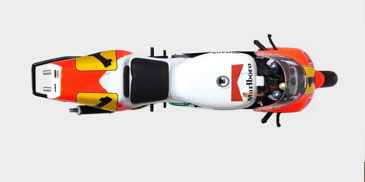 Van deze motor is alleen een vast model beschikbaar. De decals van Marlboro heb ik zelf gemaakt en aangebracht.
